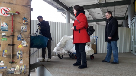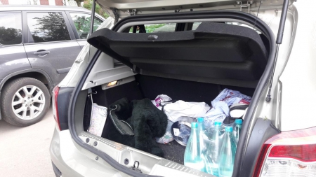 Дорогие, видите как отцы коробку со сливками в машину кладут? Им это нелегко даётся! ) Хорошо, что Бася успела сзади подбежать и помочь, и погрузка прошла нормально! ))