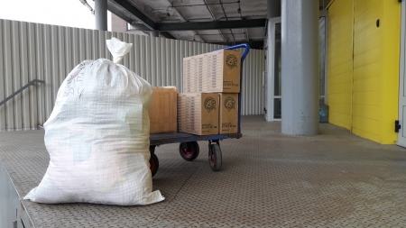 На фотографиях весь "шоколадно - сливочный" груз забирает послушник Сергий. Мы загрузили с ним со склада в Приют: 3 коробки шоколадных яиц, 1 коробку сливок, швейную машинку Анжелики, ватное одеяло Татьяны С. и Женечки для строящегося монашеского скита в д.Дракуны, Козельского района, Калужской области, в ближайшие недели о. Роман должен забрать в Скит кровать Игоря К. и матрас Екатерины и Виктора.