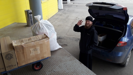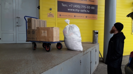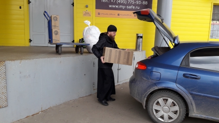 2 коробки Женя привез на наш склад в Москву (1 коробка - семейному Приюту иеромонаха Романа; 1 коробка - на московский участок).