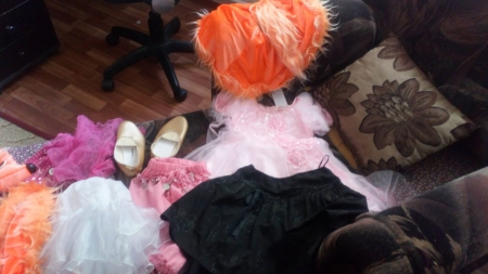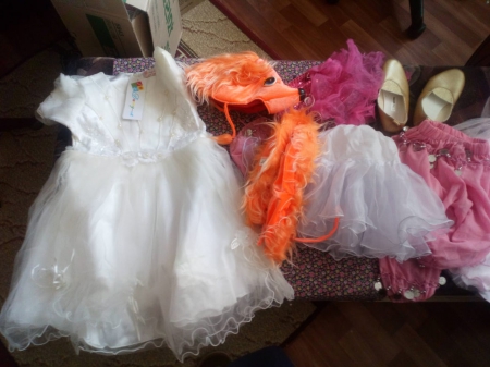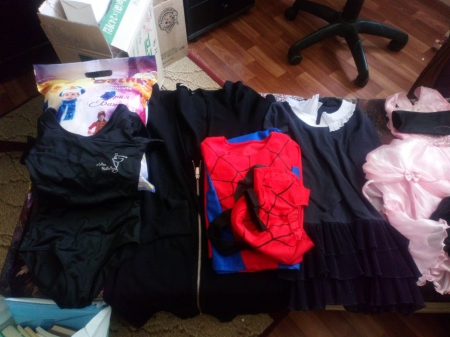 В мешок с одеялом мы положили немного платьев для Принцесс и Снежинок, несколько костюмов Зайцев и Лисичек для домашнего театра Приюта!