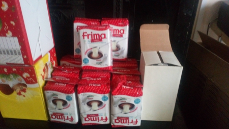 Некоторые жертвователи из нашего православного сообщества решили поддержать прихожан двух храмов (о.Артемия, о.Вячеслава) во время Великого Поста сухими, растительными сливками "Фрима" (в 1 коробке - 24 пакета). Сливки заказали в Туле, их привезли в храм о.Артемия. Закуплено 5 коробок сливок.
