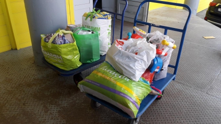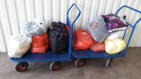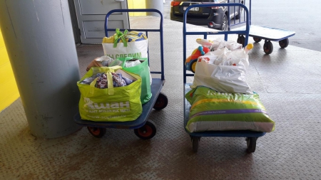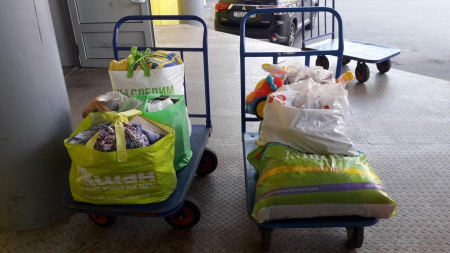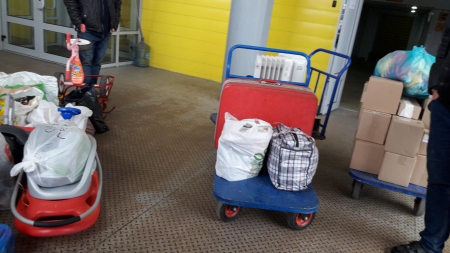 Отдельная благодарность тем, кто жертвовал молоко и детское питание! На первой фотографии Вы видите целую тележку с упаковками молока и детского питания, которые мы отправили нашим волонтёрам!