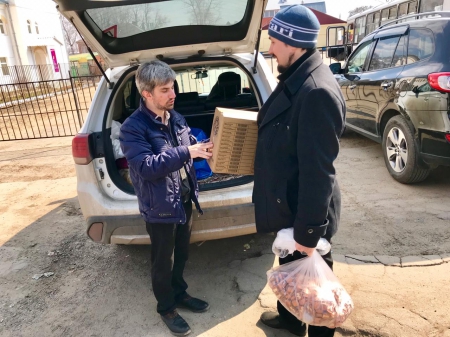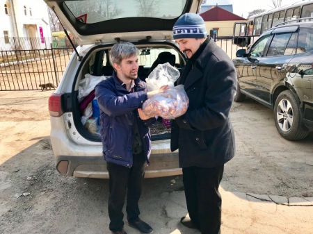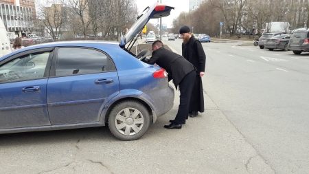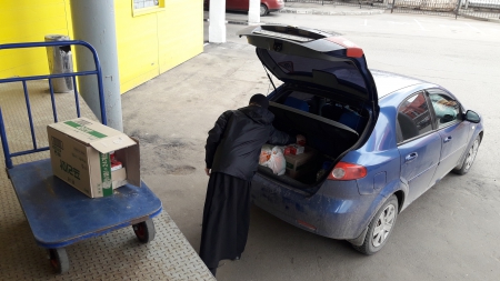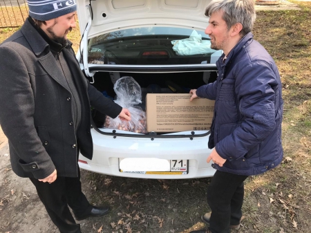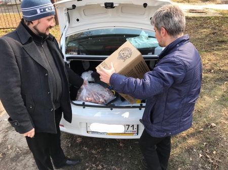Передача гуманитарной помощи о. Вячеславу из Ефремовского района.