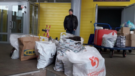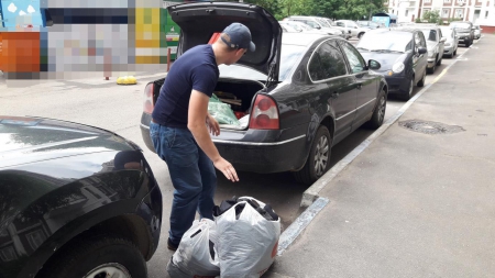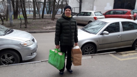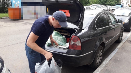 Это Сергей с м. Семёновская - заботка моя.)) Едет к родителям в Калужскую область, по пути заехал ко мне и завёз вещи, которые они с Марией собрали для остро нуждающихся людей.