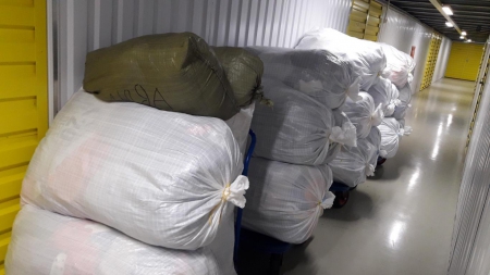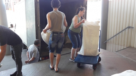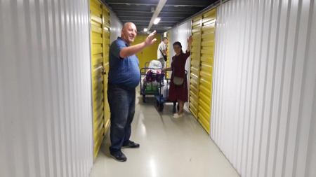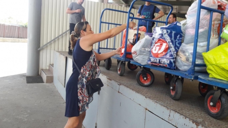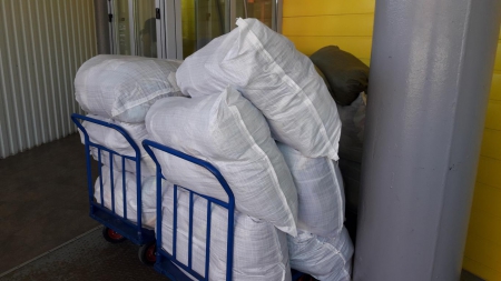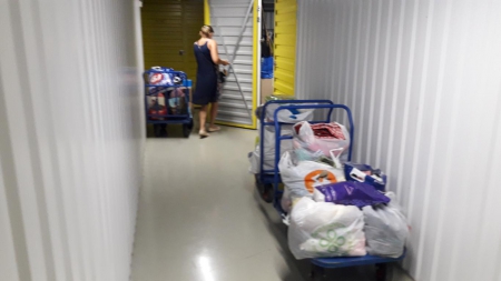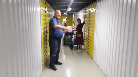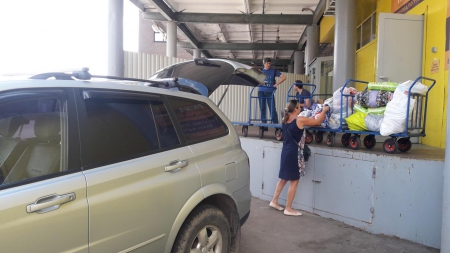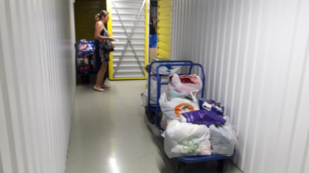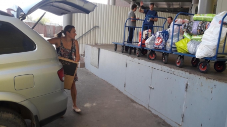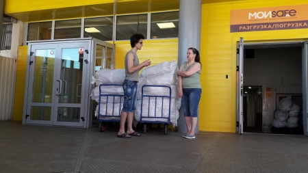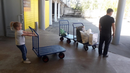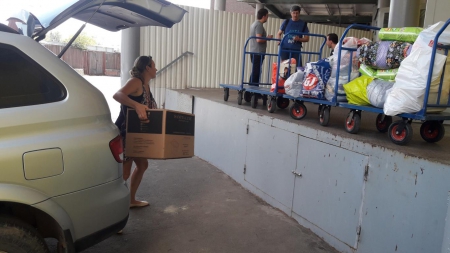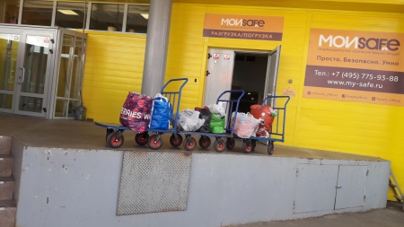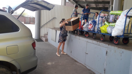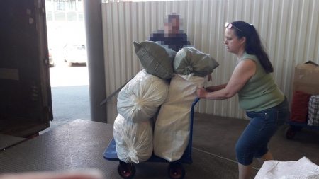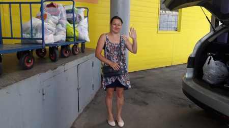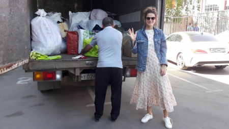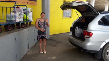А это наша дорогая Ольга! Сколько прекрасной одежды для детишек привезла Олечка на склад! Четыре тележки помощи выгрузила Оля из своей машины. Четыре!!!