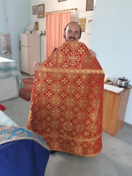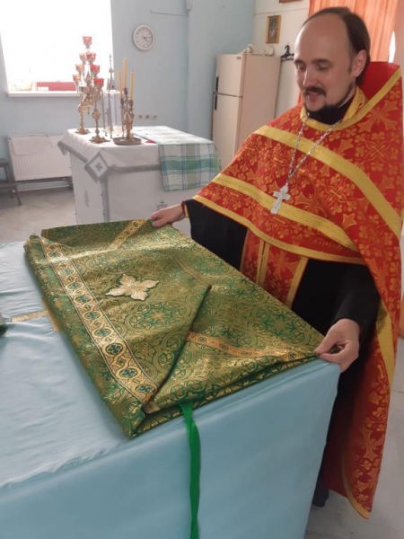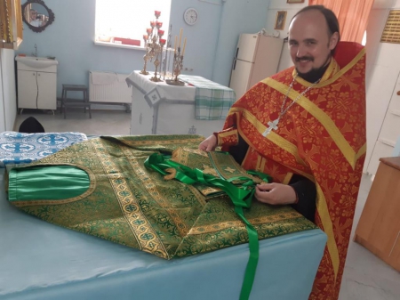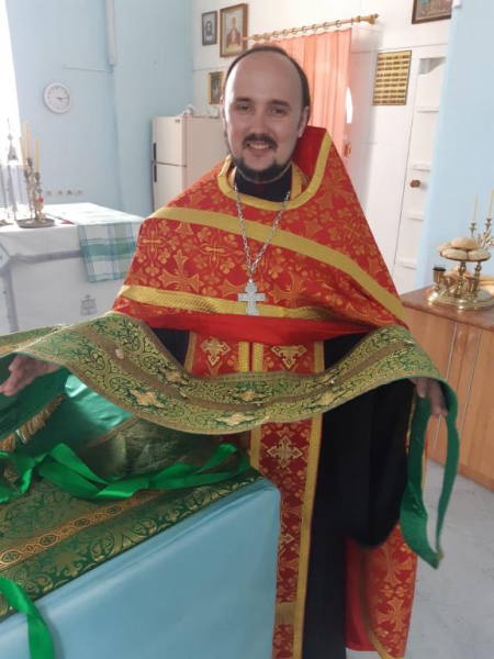 "Добрый вечер, Людмила! Хочу поделиться с Вами радостью, и, даже скажу, своим ликованием: у меня в храме теперь священническое облачение всех цветов имеется! Последнее, что я приобрел, благодаря "Православной помощи", это голубого цвета - для праздников в честь Богородицы и красного - для Пасхальных торжественных Богослужений. В комплект с облачениями вошли ещё и покровцы с воздухом, и всё пошито в одном стиле.)) Моему счастью нет предела, я радуюсь, что есть Вы, помогающие такому далёкому сельскому приходу, который выживает, как может. Теперь обшить останется цветным материалом престолы и жертвенники и храм будет сиять.)) Низкий Всем поклон и благодарность! Скажу прямо, облачение есть риза для служения Богу, и при несения бескровной жертвы за наши грехи, Вы несёте своё служение Богу, жертвуя и помогая храму Божию. Имена всех, пожертвовавших облачение в храм, буду поминаться за Божественной Литургией. Господь да Благословит всех Вас и пошлёт всё просимое и полезное на потребу!!!